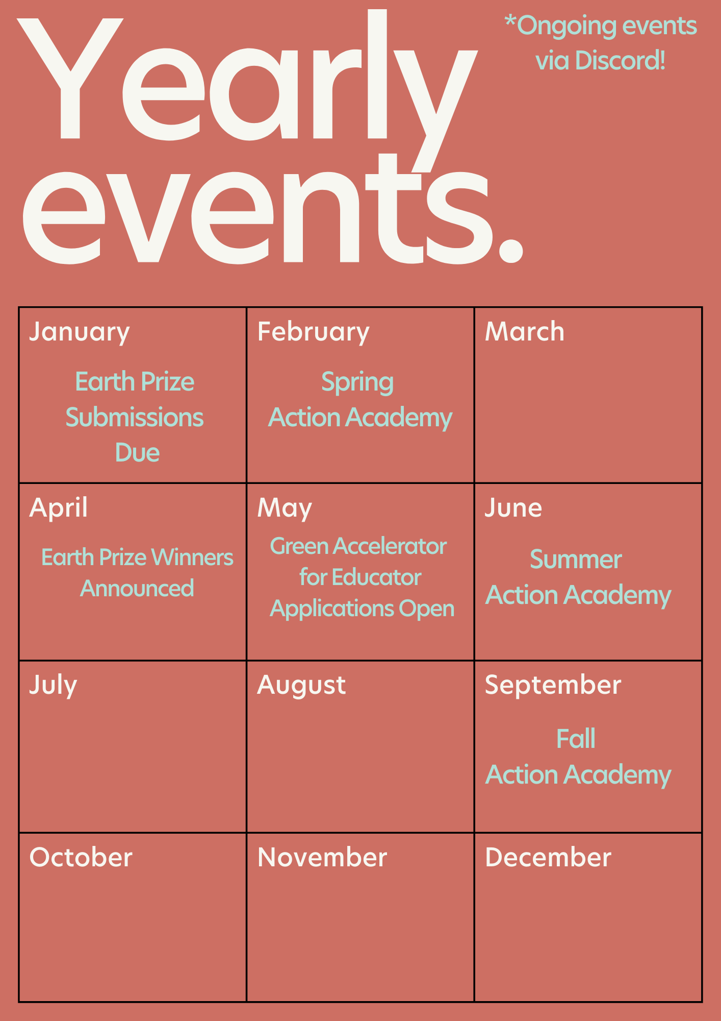 The Earth Prize’s Discord Community is a safe, supportive online community for students who care about the environment—whether they’re ready to compete in the Earth Prize or just curious about climate action. Students from around the world come together to learn about environmental issues, connect with like-minded peers, and turn ideas into real impact. Inside the server, students can explore climate and sustainability resources, join discussions and workshops, collaborate on projects, hear from past Earth Prize winners, and take part in challenges and volunteering opportunities. With clear guidelines and active moderation, it’s a welcoming space where students can learn, create, and take action beyond the classroom.