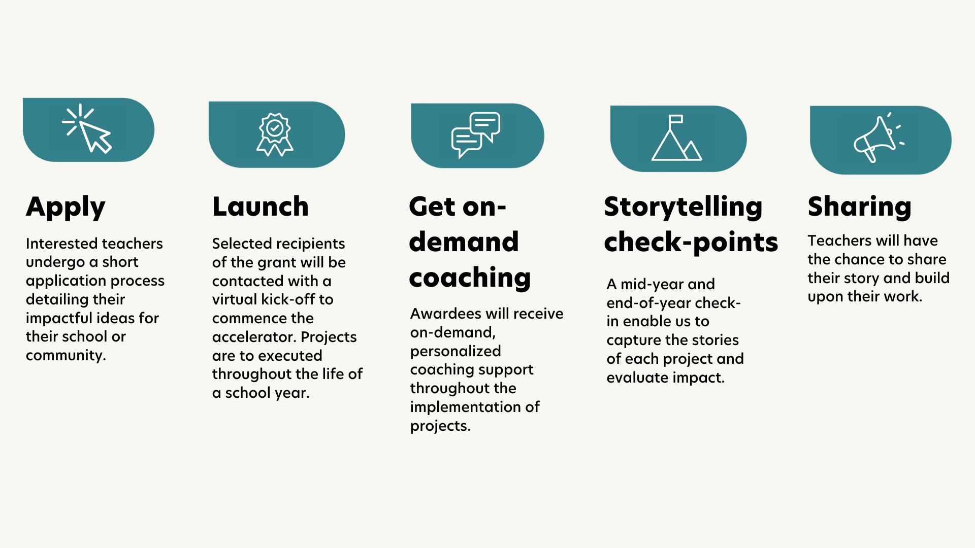 Each school year, we invite teachers worldwide to apply for microgrants to bring their climate-focused ideas to life. Selected teachers join a supportive cohort, receiving funding, personalized guidance, and resources from The Educators’ Lab to help turn their projects into reality. Teachers retain full ownership, with access to storytelling support, community connections, and partnership opportunities.